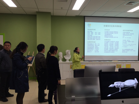 华莘教育的老师带领南通大学一一参观了基地的各个实验教室,详细讲解了各个实验教师的功能,并与南通大学的老师作了互动交流。陈书记表示,希望以后可以进一步加强双方的合作交流,充分利用学校的教育研究优势和华莘教育的创新资源优势,实现“互动、合作、共享、共赢”的目标。