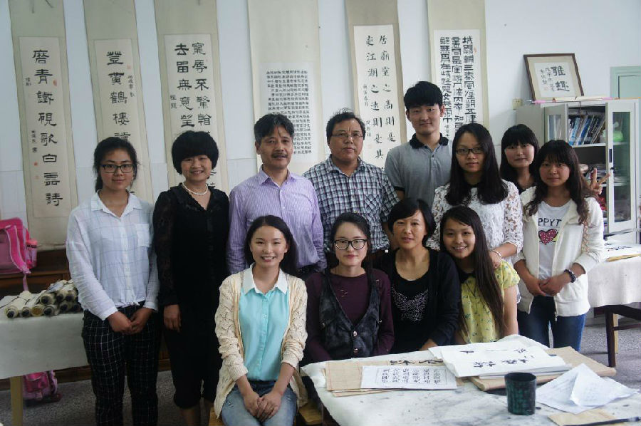 2015年6月17日下午,书法研习社社员前往十里坊小学向王道林老师学习书法。