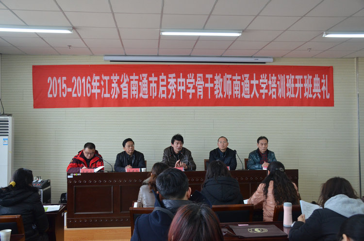 2016年1月13日,2015~2016年江苏省南通市启秀中学骨干教师培训班开班,玩球直播 党总支书记陈炜、启秀中学校长杨志冲,副校长马建华、教研室主任彭文明和启秀中学46位骨干教师出席了开班典礼,开班典礼由项目负责人孟献华副教授主持。