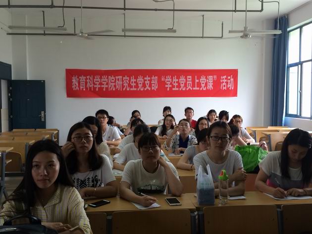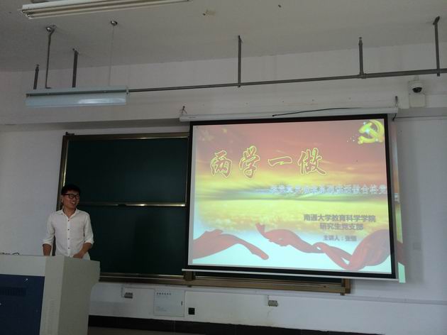 研究生党支部在18号教学楼102教室举办学生党员上党课活动。研15教育张恒同学和研14教育卢倩同学围绕“两学一做”主题,分别为大家上了一节20分钟的微党课。研究生党支部书记蔡婧老师、研究生党支部全体学生党员和入党积极分子参加本次活动。