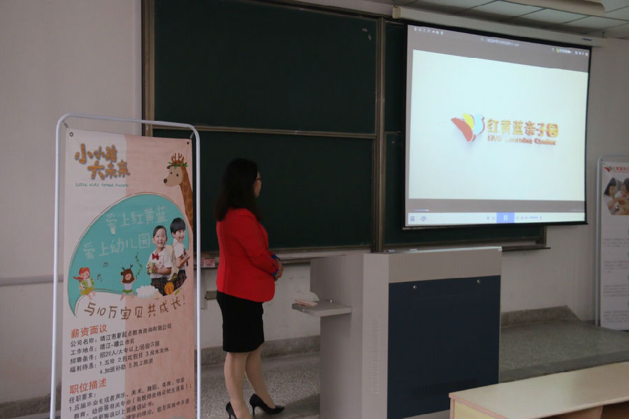 10月6日上午,在业内享有声誉的靖江红黄蓝幼儿园专场招聘宣讲会在JX8-107教室举行。玩球直播 2017届学前专业的毕业生参加了此次活动。宣讲会现场,工作人员向同学们介绍了红黄蓝幼儿园的发展历程,让大家对该企业有了比较深入的了解。此次招聘会为学前的同学提供了很多岗位。随后,工作人员和有意向的同学进行了面谈。后期,玩球直播 将举办多场招聘宣讲会,努力为玩球直播 毕业生搭建了一个与社会企业互动交流的平台。