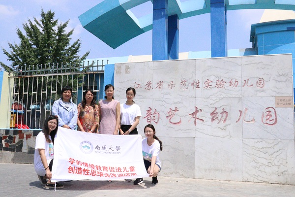 为了更好地备战“挑战杯”全国课外学术科技作品竞赛,玩球直播 作品《学前情境教育影响儿童创造性思维发展的实验研究》在暑假期间成立社会实践调研团,对作品和实验结果进行进一步的完善和推广。7月20日,在院团委书记魏琳老师和作品指导老师季燕老师的带领下,冒着酷暑,赴连云港市海韵艺术幼儿园进行项目推广。周玉琴园长对实践调研团的到来表示欢迎,她简单介绍了海韵幼儿园和连云港幼教发展的概况,并表达了希望能南通大学进一步合作,探索幼教理论和实践的融合发展。