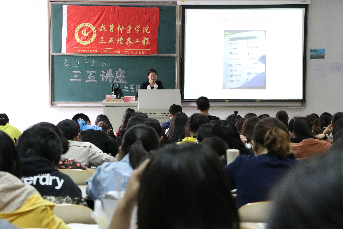 2017年10月25日,陶金玲教授在8号楼301做了题为“美国教育启示”的三五讲座,玩球直播官网 200余名同学听取讲座。陶老师结合自身教育教学经历与同学们共同分享,共同探讨。