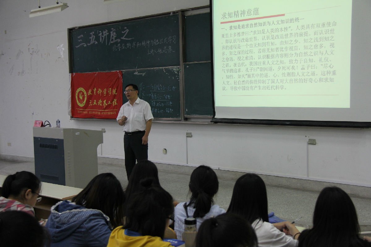 2017年10月11日下午2点,张志泉教授主讲的“论学生的求知精神和融汇式贯通”三五讲座在主校区9号楼202教室成功举办,玩球直播 的近300名学生聆听了此次讲座。