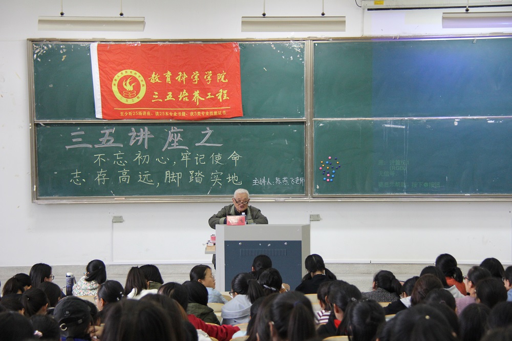 11月8日13:30,关工委陈燕飞教授在9号楼202给玩球直播官网 学生作题为“不忘初心,牢记使命,志存高远,脚踏实地”的三五讲座,讲座由院党总支副书记徐红波主持,近280余名学生到场聆听。