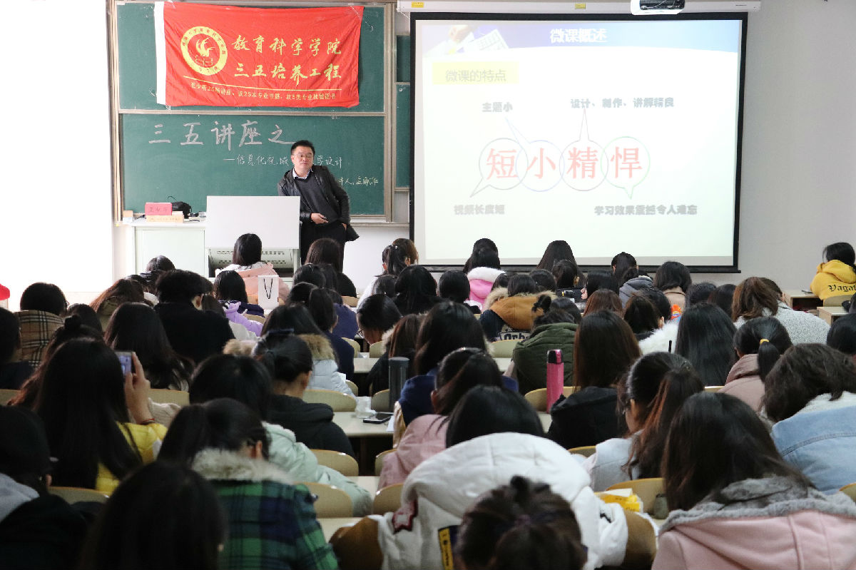 11月22日下午,玩球直播 在8号楼203举办三五讲座,孟献华老师做题为“现代化视域的教学设计”的报告,全院近200名学生到场参与。