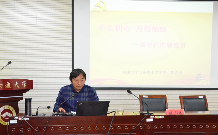 根据学校党委统一部署,11月22日下午,玩球直播官网 举行党的十九大精神宣讲报告会。南通市及学校“党的十九大精神宣讲团”成员、政治玩球直播 党总支书记陈志杰教授作宣讲报告。玩球直播 党总支书记陈炜主持报告会,全院师生党员参加报告会。