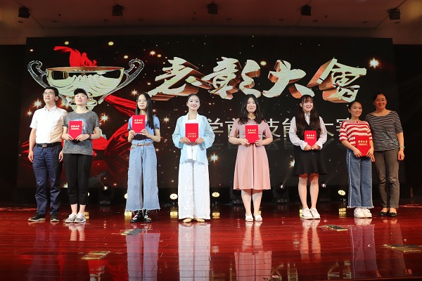张雪松副处长和徐红波副书记为在小教技能大赛中获奖的同学颁发荣誉证书