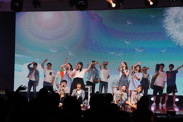 张志泉老师(左三)和陈叶梓老师(左四)担任晚会的主持人