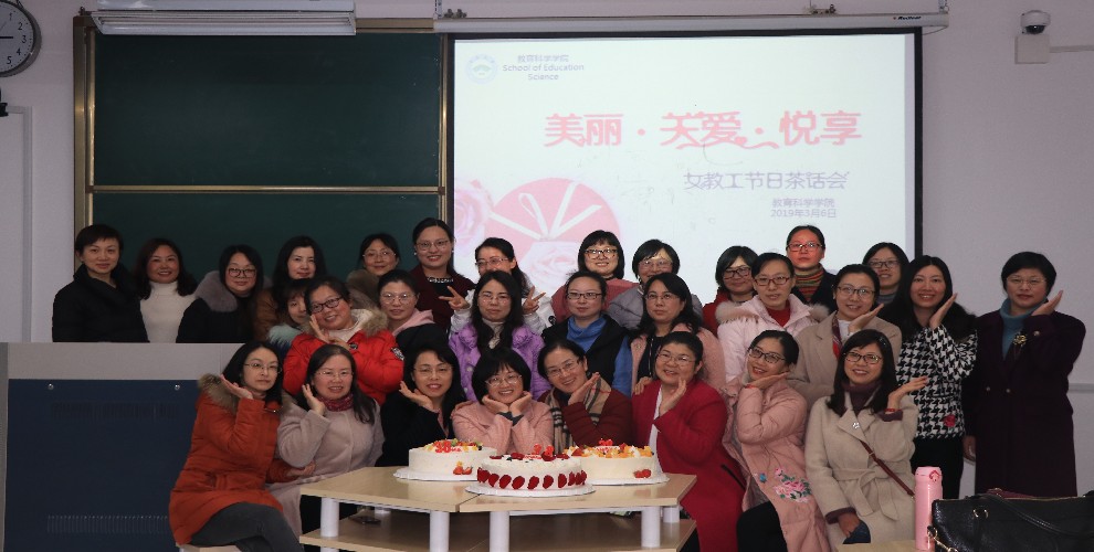 茶话会上,首先由朱丹书记代表玩球直播 党政向全体女教工送上“三八”妇女节的温馨祝福和美好祝愿,与会人员围坐一起,相互交流,讨论的话题丰富多彩,气氛愉悦而浓烈。教科院的女教工较多,占所有教工的59%,平时忙于工作,大家表示很开心有这样的机会欢聚一堂。朱书记希望女教工关爱自己、增强健康意识,悦享工作与生活,做由内而外美丽的新时代女性,在各自平凡的岗位上展示巾帼风采。最后,大家一起为3月份生日和今年整生日的三位老师举行了一个特别的庆生仪式,合影留念并分享了甜美的蛋糕。茶话会上,朱丹书记还提议成立了玩球直播 女子健美操队。