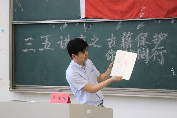 为了增加学生对于古籍修复的了解,玩球直播官网 于6月5日在9号教学楼303教室举办了以“古籍保护,你我同行—古籍修复技艺进校园”为主题的三五讲座。本次讲座由王佳楠老师主讲,教科院150余名学生到场聆听。