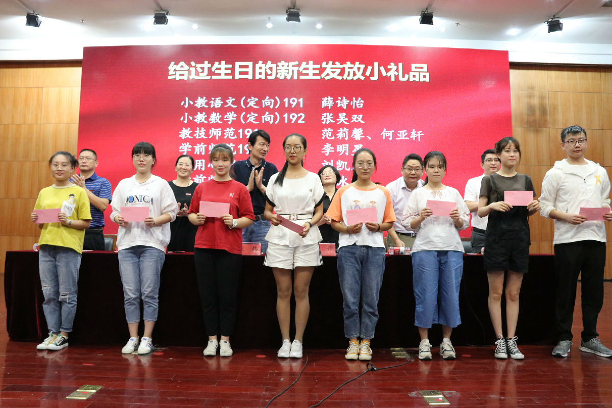 还特意为开学一周内过生日的十名同学送上了精心准备的生日礼物,让新生们感受到来自教科院大家庭的温暖。典礼上,全体新同学为自己佩戴上南通大学校徽,宣告自己成为南通大学的一员。