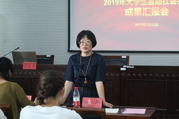 玩球直播 党委书记朱丹认真听取了此次成果汇报会,她首先祝贺玩球直播官网 2019年暑期社会实践圆满完成了既定的任务,从开始和结束,做到了一个完整的闭环。优秀团队和个人的经验分享对自身而言是有益的收获,对与会者今后开展社会实践更是一种指引和推进。最后,她对今后的社会实践活动提出了三点期待和要求,一是社会实践要更加注重前期的设计和规划,尤其是团队的实践要做到活动有预案,确保后期实践的顺利开展。二是希望今后即将开展社会实践的同学多多利用好各类实践的资源,多思考,多体验、多请教,通过实践提升自身的综合能力。三是强调社会实践的规范性,无论是语言的表达还是团队的工作,都要有完整性、规范性。