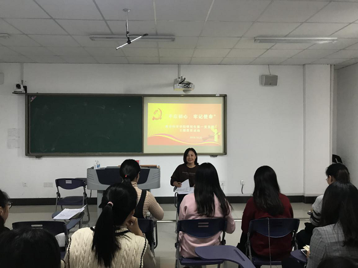 10月23日下午,“不忘初心、牢记使命”玩球直播 研究生第一党支部主题教育活动在18号楼1127会议室举行。支部书记徐巧娣老师与24名支部成员参加此次主题教育活动,党支部组织委员李娜主持本次活动。