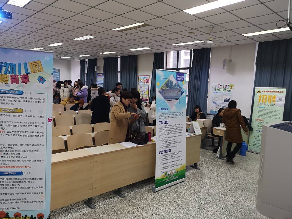2019届毕业生专场招聘会在主校区8号、9号教学楼多个教室举办,吸引了上海市崇明教育局、太仓教育局带领辖区学校组团前来招聘,其中上海市崇明教育局带领崇明区域24家学校负责人参加招聘会进行现场面试。另有南通诺德安达双语学校、吉的堡幼儿园等12家单位前来现场招聘,为我校本科师范毕业生提供了约300多个就业岗位,为研究生同学提供了上百个就业岗位。以教科院毕业生为主体的400多名毕业生参加了招聘活动。
