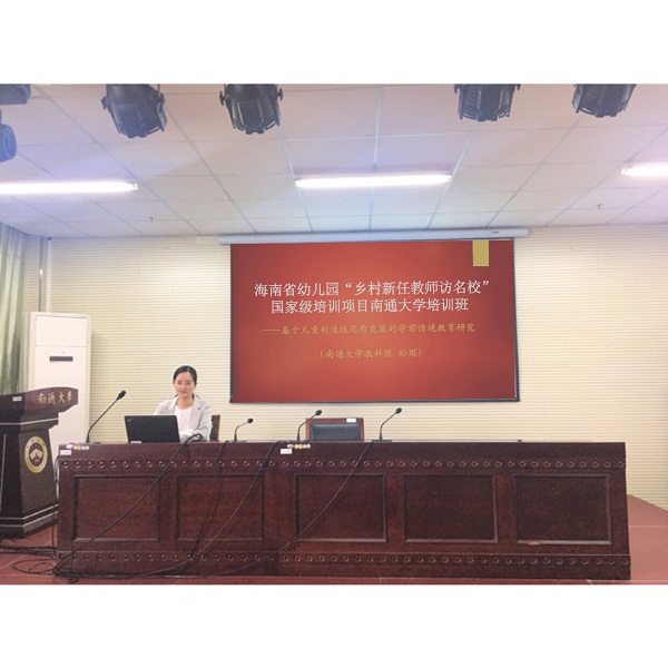 2016年4月17日,国培2016南通大学培训班工作坊在主校区18号楼1112会议室举行第九次活动。南通大学教科院研究生孙琪为国培班的学员做《基于儿童创造性思维发展的学前情境教育研究》专题讲座。