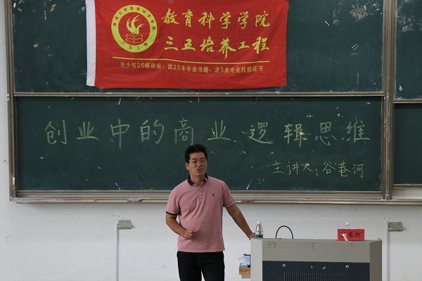 10月14日,玩球直播官网 于9号教学楼202教室举办以“创业中的商业逻辑思维”为主题的三五讲座。此次讲座由玩球直播 2008届优秀校友谷巷河主讲,教科院近200名同学聆听了本次讲座。