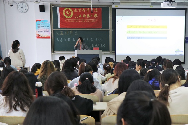 10月21日,玩球直播官网 于八号教学楼203教室举办以“大学生宿舍人际关系漫谈”为主题的三五讲座。此次讲座由蔡婧老师主讲。教科院160余名学生到场聆听讲座。