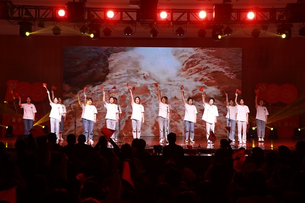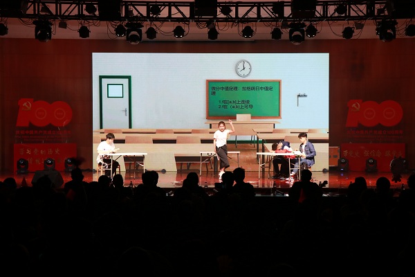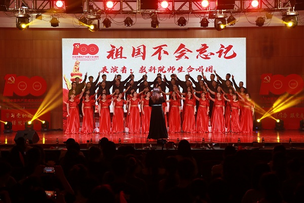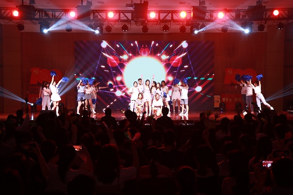 晚会在师生红歌合唱《祖国不会忘记》中拉开帷幕。由玩球直播 全体领导成员以及师生代表组成的合唱团用歌声向党的生日献上最真挚的祝福,用歌声赞扬了在祖国大地默默耕耘、无私奉献的人们。开场舞《一起跳舞吧》充分彰显了教科学子的蓬勃朝气。晚会分为三个篇章次第进行。第一篇章“青春拂晓,梦想起航”在红歌串烧中徐徐展开,百年征程书写光辉党史,筚路蓝缕绘就中华盛世。一首首经典红歌的背后是对老一辈同志峥嵘岁月的追忆,亦是对新时代少年风发意气的展望。现代舞《花枪》将国风元素融入新时代的鼓点,用舞姿演绎出巾帼不让须眉的气概。百年亦是风华正茂,诗朗诵《少年中国说》以饱满激昂的热情,铿锵有力的语调传递出少年复兴中华的坚定理想信念。
