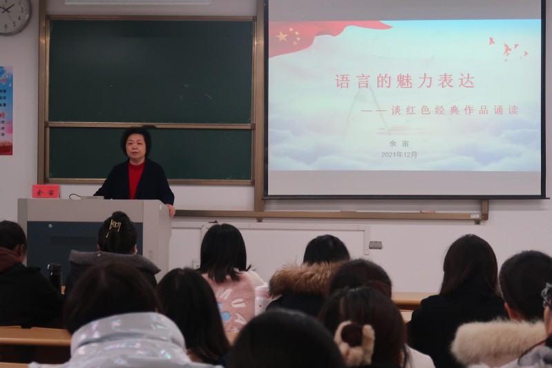 12月8日下午,国家级普通话测试员、南通市朗诵学会副会长、南通市教育局副调研员余宙应邀为我校玩球直播 师生做了题为“语言的魅力表达——谈红色经典作品诵读”的专题讲座,70余名小学教育、学前教育专业学生参加了本次讲座。