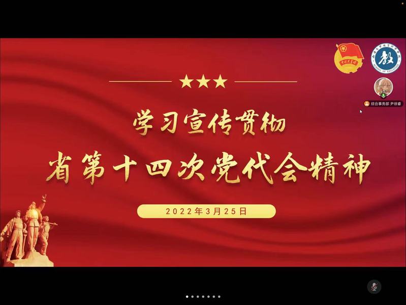 3月25日,玩球直播官网 团委学生会通过腾讯会议顺利召开了省第十四次党代会精神学习会。本次学习会由组织部部长刘一凡主讲,由综合事务部学员尹徐睿主持。教科团学全体学生干部及第三届新生骨干训练营全体学员参加了本次会议。