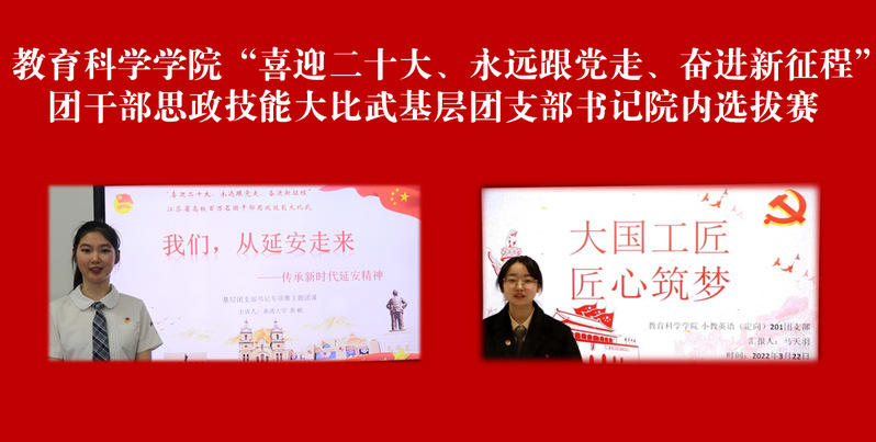 在前期各团支部推荐的基础上,基层团支部书记分别就相关主题进行了展示,综合比赛表现,最终小教数学(定向)201班黄鹂、小教英语(定向)201班马天羽将被推荐继续参加校级选拔赛。各团支书聚焦红色精神,立足青年视角,自信从容讲述了青年的青春足迹与青春奉献,体现了团员青年誓以青春之我、奋斗之我的理想信念阔步新时代新征程的决心意志,充分展现了新时代教科学子的风采。