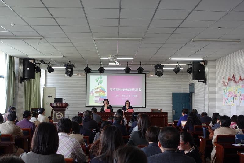10月12日下午,玩球直播 举办师德师风专题报告会,玩球直播 党委书记朱丹主持报告会。