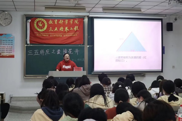 2022年11月8日,在教学楼7号楼201举办了三五讲座之爱情花开。讲座由杨岚岚老师主讲,玩球直播 2022级应用心理专业所有学生参加。杨岚岚老师带领同学们深入了解爱情,引导同学们逐渐树立正确的爱情观。她通过不同年代的爱情的样子引出了讲座的主题,从爱情的实质、谈恋爱的好处、恋爱的动机、大学生恋爱现象、性态度的角度对爱情进行解析。