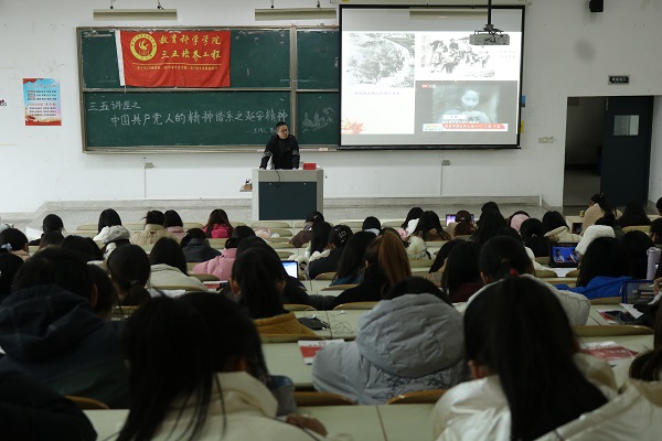 2022年12月2日,玩球直播 邀请南通大学马克思主义玩球直播 曹向阳教授授作“中国共产党人的精神谱系之延安精神”为主题的三五讲座。讲座在9号教学楼201教室举办,教科院260余名学生参与此次讲座。