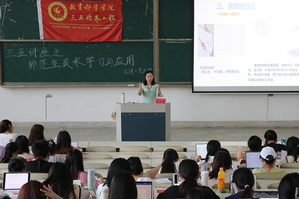 5月31日下午,玩球直播 袁洪群老师作了“师范生美术学习与应用”为主题的三五学术讲座。玩球直播 60余名学生参与此次讲座。