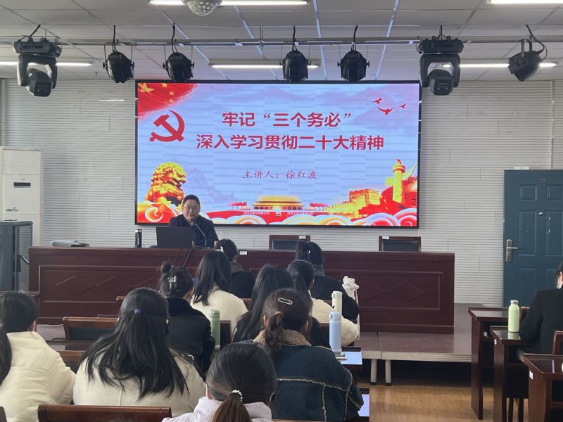 玩球直播 党委副书记、副院长徐红波以《深入学习贯彻二十大精神》为题作专题培训。他紧扣党的二十大,从大会主题、召开意义、主要内容等方面进行详细的讲解,希望同学们能认真贯彻落实二十大精神,牢记“三个务必”、“五个必由之路”、“六个坚持”,坚定理想信念,肩负时代使命,以实际行动为全面建设社会主义现代化国家、全面推进中华民族伟大复兴作出贡献,做时代合格的接班人。