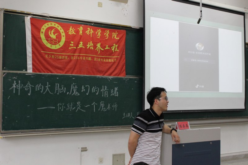5月22日下午,玩球直播官网 在4号楼103教室举办以“神奇的大脑,魔幻的情绪——你就是魔术师”为主题的三五讲座,讲座由陈乐乐老师主讲,玩球直播官网 260余名同学参与本次讲座。