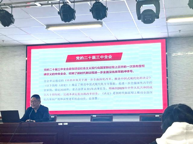 玩球直播 党委副书记、副院长徐红波为全体学员作题为《深入贯彻学习党的二十届三中全会精神》专题讲座。他从党的二十届三中全会的重要性、主要内容、历史地位等方面进行阐述,介绍了习近平主席的重要观点和相关内容,指出要深刻领会和把握进一步全面深化改革的主题、重大原则、重大举措、根本保证,深刻领悟“两个确立”的决定性意义,增强“四个意识”、坚定“四个自信”、做到“两个维护”,为全面建成社会主义现代化强国、实现第二个百年奋斗目标,以中国式现代化全面推进中华民族伟大复兴而努力奋斗。