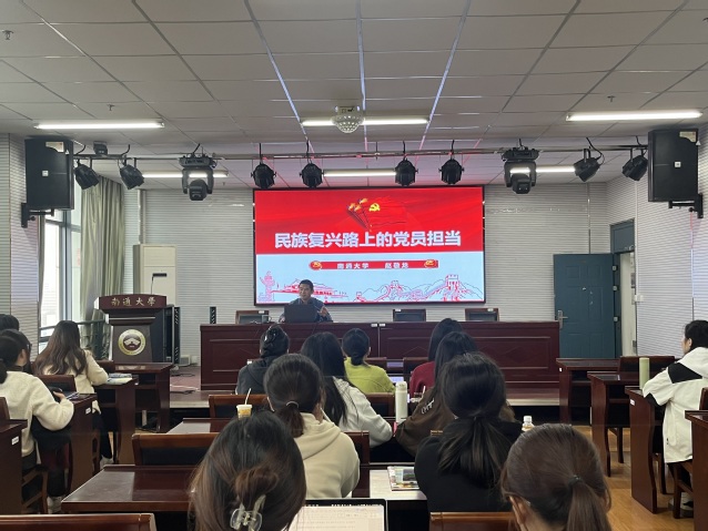 玩球直播 团委书记、本科生第二党支部书记赵敬龙老师作题为《民族复兴路上的党员担当》专题报告。他从百年来的伟大精神、党取得的四个伟大成就、新时代党员的伟大担当这三个层面,介绍了中国共产党在领导国家实现民族复兴的实践中付出的巨大努力和牺牲,展现了共产党人不忘初心、牢记使命的担当精神。启迪新时代党员同学要继承和发扬先辈的优良传统,树牢共产主义理想信念,在基层实践中发光发热,用脚丈量祖国的大地山川,将青春挥洒在每一片热土,在实现民族复兴的伟大征程上建功立业。