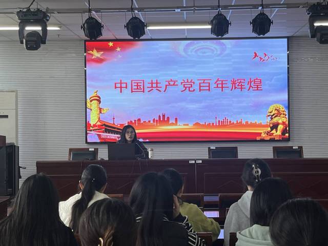 学工办副主任、研究生第二党支部书记康月莹老师以《中国共产党百年辉煌》为题,向学员们介绍了中国共产党百年艰辛的奋斗历史。她指出通过对党的四个历史阶段的学习,既是一次把握规律、把握未来的理论学习,也是一次坚定信仰、坚定方向的党性教育。学习党史,即增强了对党的感情认同、理论认同、政治认同,也是继承党的成功经验和优良传统的需要,更加是加强党的思想理论建设的重要任务。