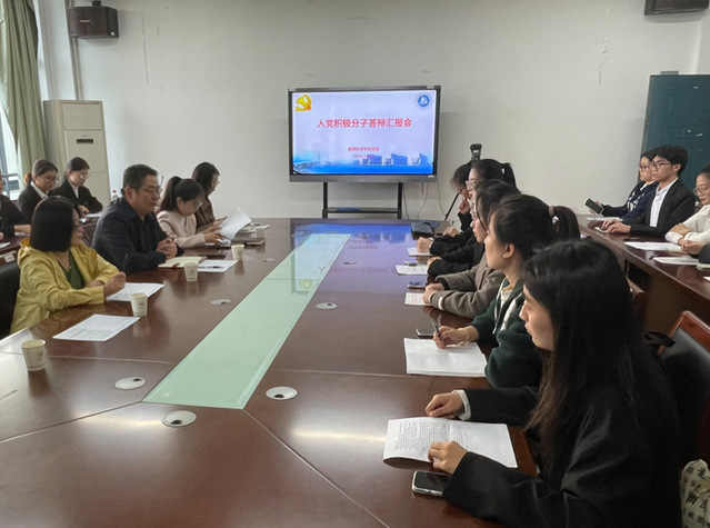 11月12日下午,玩球直播 党委举行入党积极分子答辩汇报会,考察确定下半年党员拟发展对象。院党委书记朱丹、副书记副院长徐红波参加答辩会。