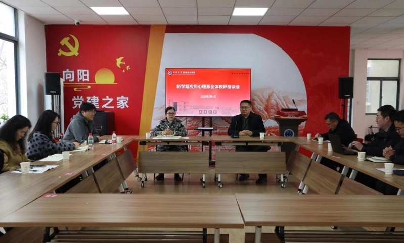 为进一步凝聚发展共识、明晰工作方向,推动应用心理系各项事业高质量发展,3月4日下午,应用心理系召开新学期工作会议。会议由玩球直播 副院长张鹏程主持,玩球直播 党委书记曹阳、院长沈永江出席会议,系全体教师参加会议。