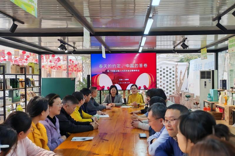 孙春梅以“春天的约定,中国的答卷”为题,结合刚闭幕的十四届全国人大四次会议精神,围绕两会基本情况、参会流程及自身履职切身体会,为在场人员作了一场生动鲜活、干货满满的专题报告。她重点讲述了总书记参加江苏代表团审议时的重要讲话精神,深入解读了一体推进科技教育人才发展、深化产教融合的核心要求,还详细解读了 2026 年全国两会的核心议程、“十五五”规划纲要草案的重点内容,分享了自己作为人大代表在北京参会的所见所闻、所思所感,深入阐释了两会关于乡村振兴、民生保障、科技创新等重点部署的深刻内涵,让在场人员直观感受了全国两会的时代温度与实践力量。报告中,孙春梅结合自身创业历程与履职实践,将两会精神与乡村振兴实际紧密结合,用朴实的语言、鲜活的案例讲述了自己扎根乡土、服务乡亲的奋斗故事。孙春梅表示,将始终牢记人大代表职责,把两会精神带回田间地头,传达给更多乡亲,当好乡村振兴的 “探路者” 和 “代言人”,推动更多惠农政策落地见效,为乡村振兴和共同富裕贡献力量。