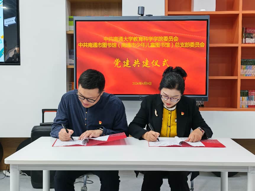 玩球直播 学前教育系党支部书记潘莎莎与南通市图书馆一支部书记、副馆长赵毅菲签署党支部共建协议,明确在组织共建、活动共联、资源共享等方面合作意向。