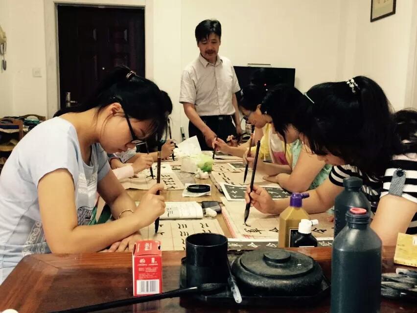 2015年7月16日,南通大学书法研习社“翰墨书香·书法传情”暑期社会实践小分队成员一同前往王道林老师家学习书法。