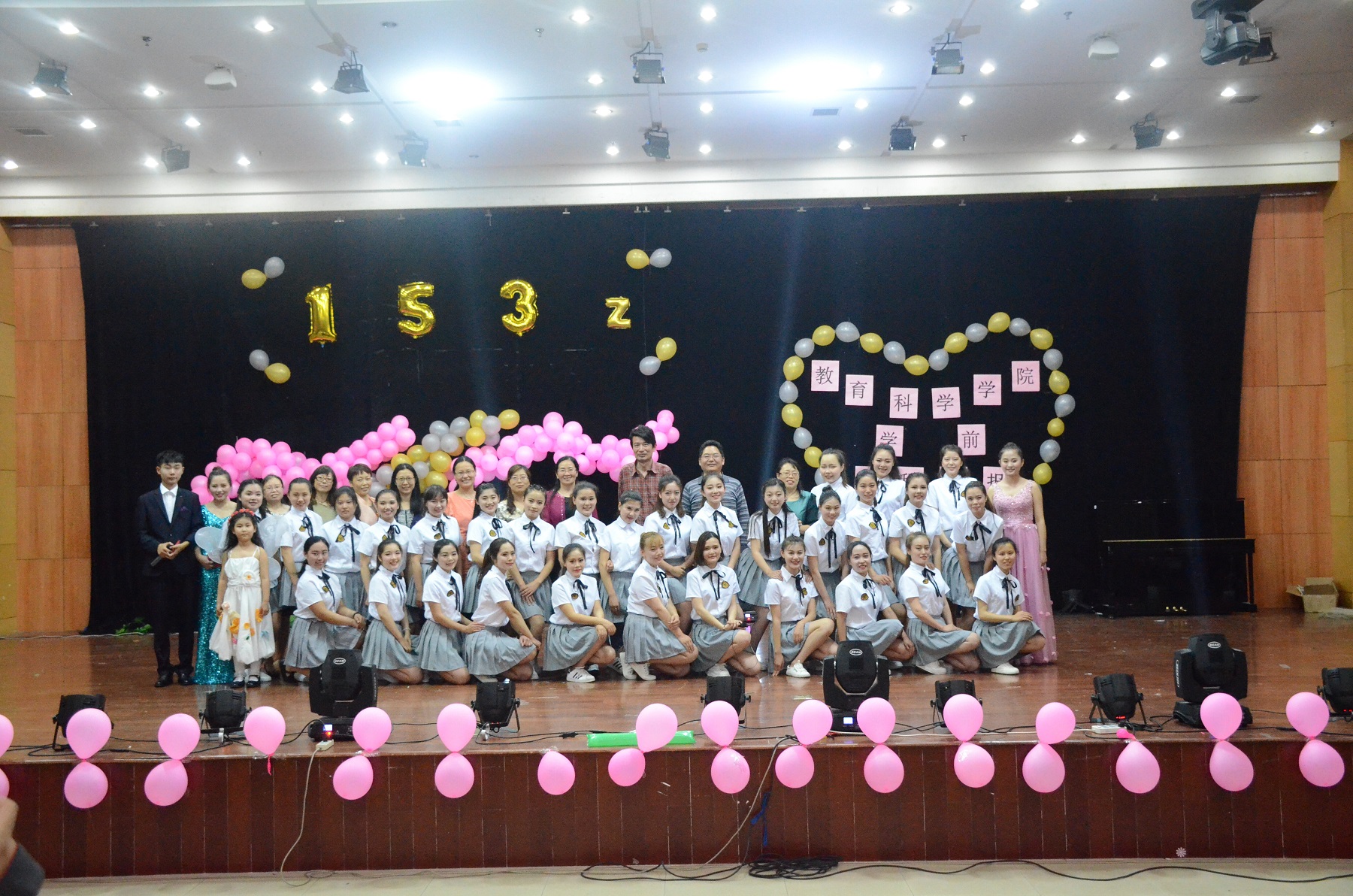 晚会最后全体同学和教师领导们合影留念,学前153Z班专场课程汇报圆满结束。