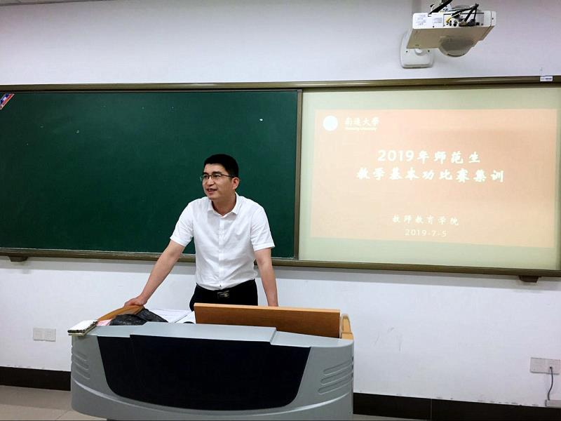 7月5日,我校2019年“第八届江苏省师范生教学基本功大赛”集训在教师教育实践教育中心开班。