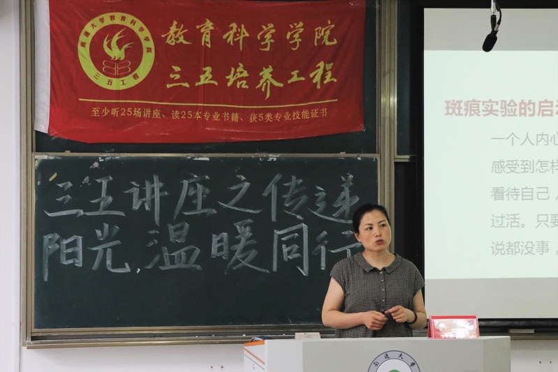 2021年6月3日,玩球直播官网 在主校区8号教学楼205教室成功举办了以“传递阳光,温暖同行”为主题的三五讲座。此次讲座由钱宇凤老师担任主讲老师,应用心理专业201、202班、教育技术专业201、202班的学生参加了本次讲座。