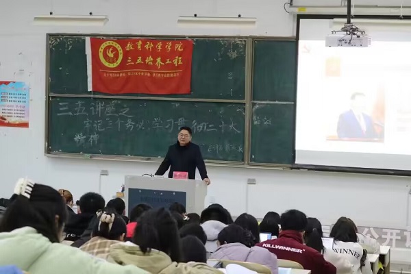 2022年12月9日,玩球直播 于9号楼202号教室举办了以“牢记‘三个务必’,学习贯彻二十大精神”为主题的三五讲座,玩球直播官网 党委副书记、副院长徐红波担任主讲人。玩球直播 150余名同学参加了此次讲座。
