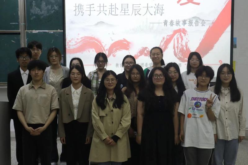 5月12日晚,由玩球直播官网 团委学生会社团工作部主办的“岁月漫长心怀热爱,携手共赴星辰大海”青春故事报告会在9号楼201教室举行。本次青报会邀请了辅导员康月莹,优秀学生代表陆雪茹和宋子昀担任主讲人,社团工作部平煜恒、黄俊杰担任主持人。