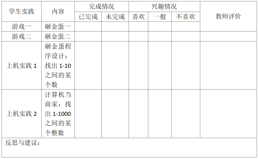 | 学生评价 | 学生自评,教师收集并进行评价。以便教师掌握学生的课堂参与情况,进行教学策略的调整 | 1 | |||||||||||||||||||||||||||||||||||||||||||||||||||||||||||||||||